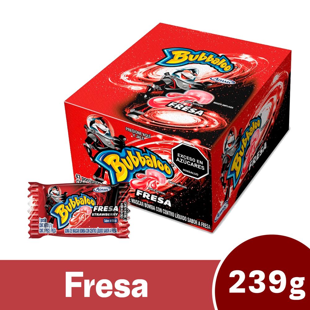 Chicle bomba caracteristico por su delicioso centro líquido y sabor fresa.